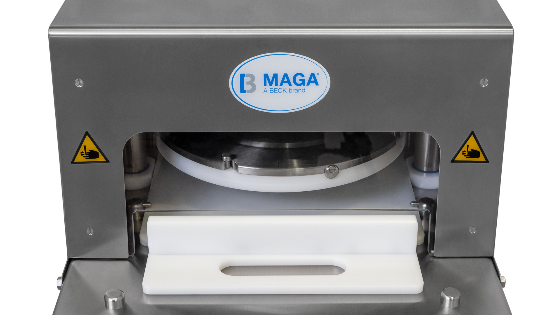 The MAGA® meat press operates semi-automatically and features a continuously adjustable pressing strength from 0.5 to 30 mm. With its sensor-controlled safety system and robust design, it allows meat to be processed particularly gently and precisely. Vegetarian patties or dough portions can also be pressed with ease.